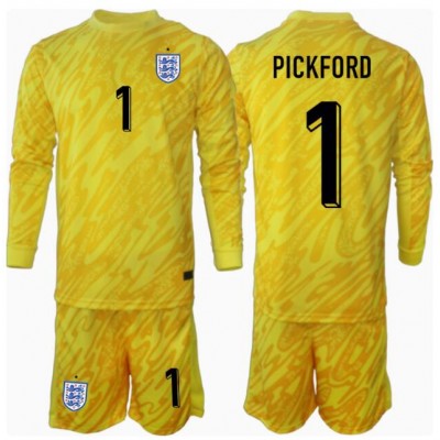 England Jordan Pickford #1 Målmand Udebanesæt Børn EM 2024 Langærmet (+ Korte bukser)